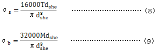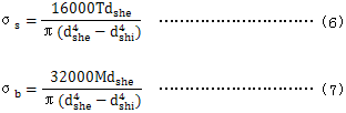 軸的名義應力按以下公式計算。公式(6)與公式(7)可應用於薄壁軸的設計 ,這裏比值dshi/dshe<0.9是不允許的。