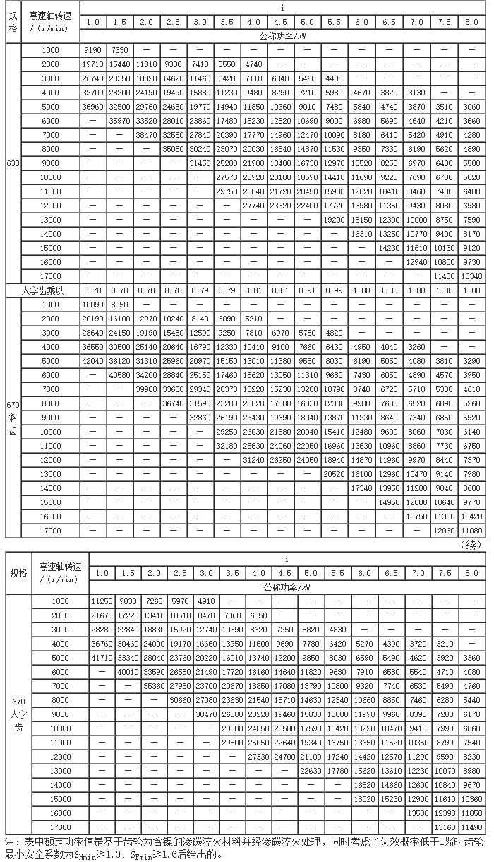 GS系列高速漸開線圓柱齒輪箱公稱功率(三)(JB/T7514-94)
