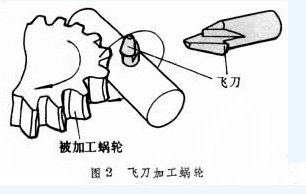 飛刀相當於(yú)蝸輪滾刀的一個刀齒。飛刀切齒隻能採用切向進給法,在滾齒機上可使飛刀轉一周蝸輪轉Z1個齒,再加上飛刀的切向進給與工作台的附加轉動,也能按展成法原理切出正確(què)的齒形 。