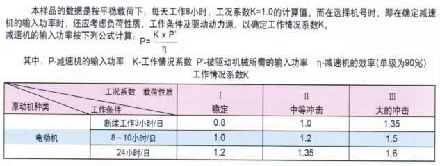 擺線針輪減速機載荷性質分類和負載系數與工作時間關系表