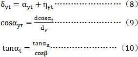 砧的尺寸應選擇得使其在齒槽中大緻在分度圓的位置接觸齒面 ,棱柱的半角δyt可以用下面的近似方法來確定,此處δyt、ayt和ηyt爲在測量圓上接觸的各角(見圖8)。