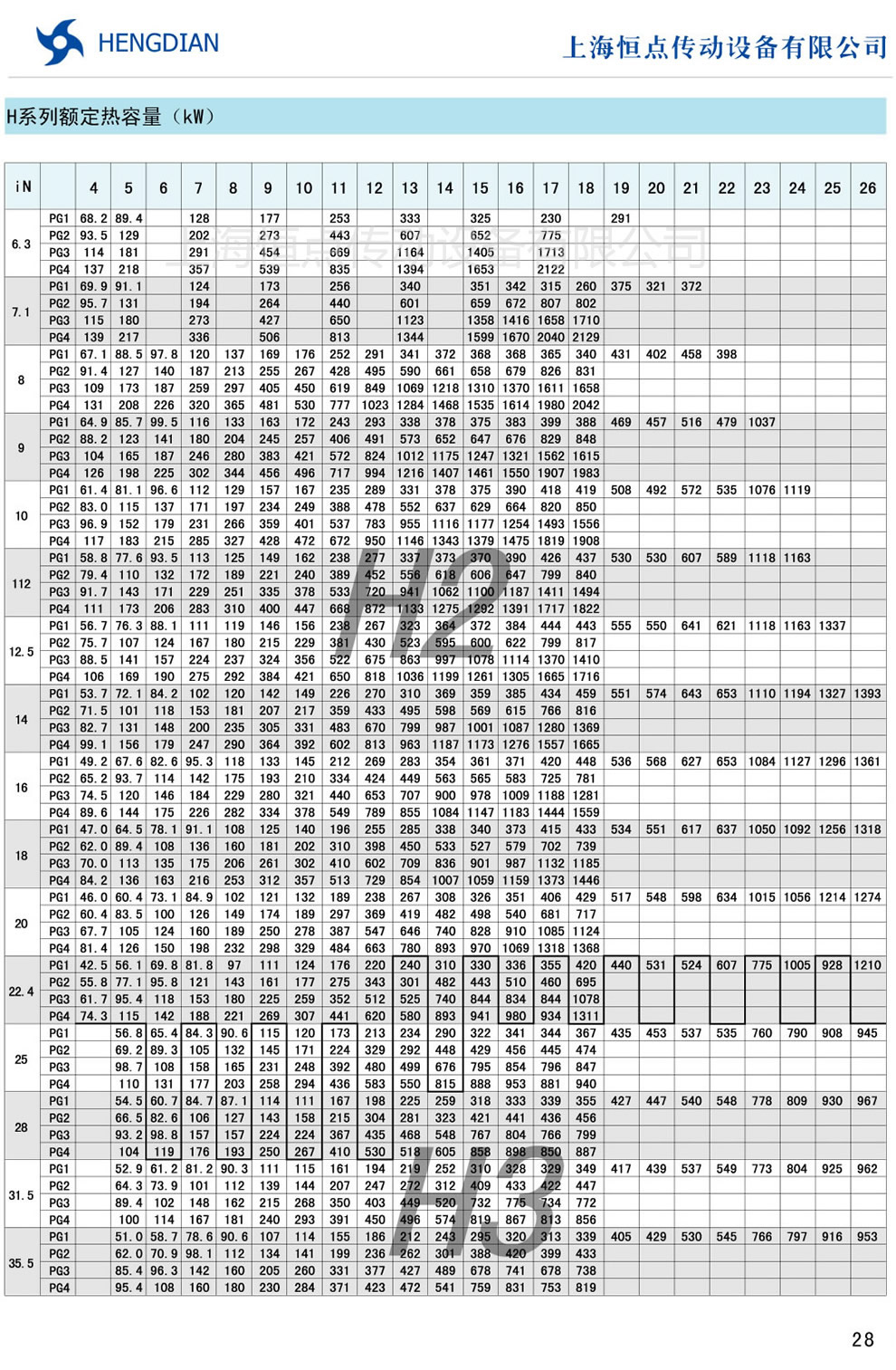 9 - B系列傳動能力表 10 - H系列額(é)定熱(rè)容量
