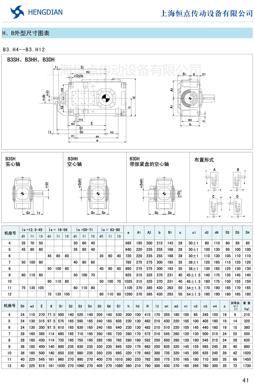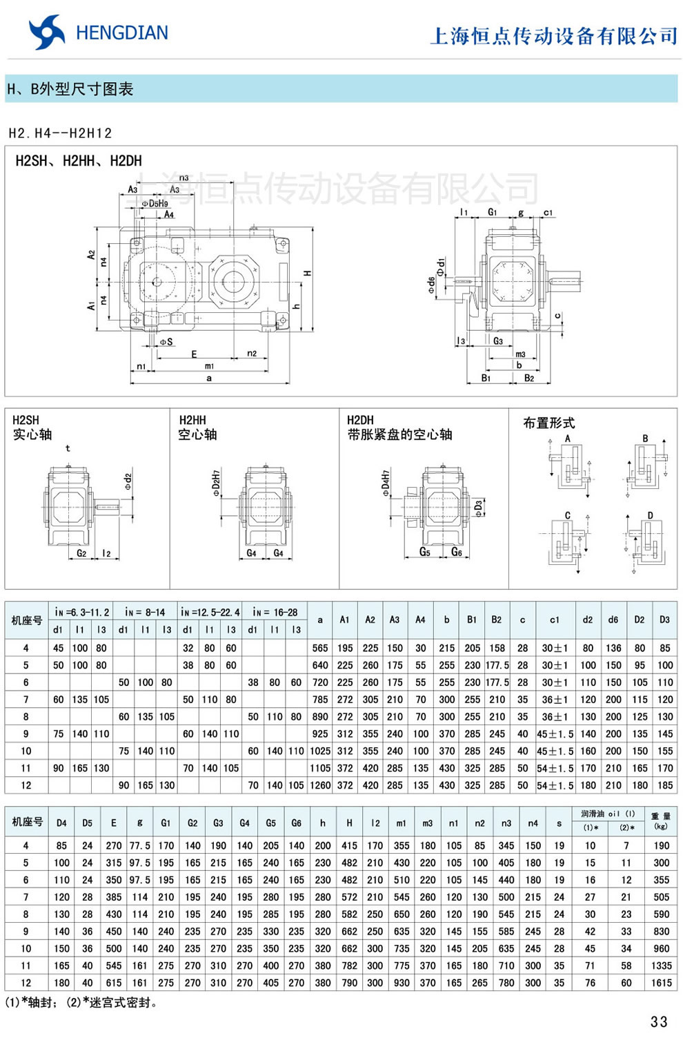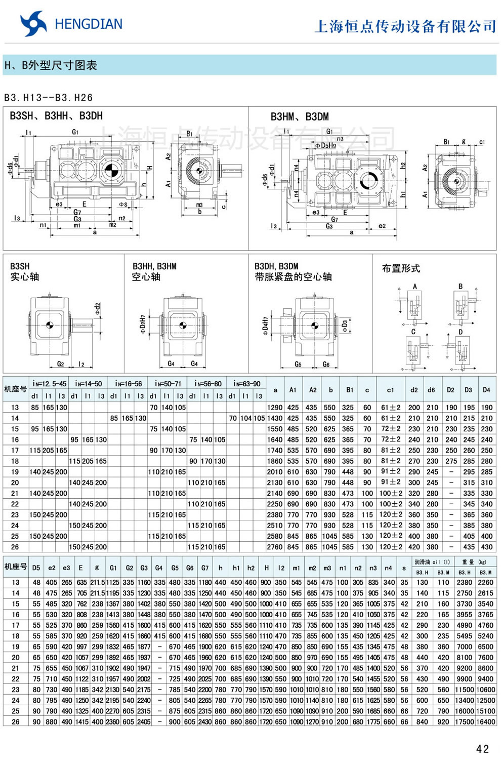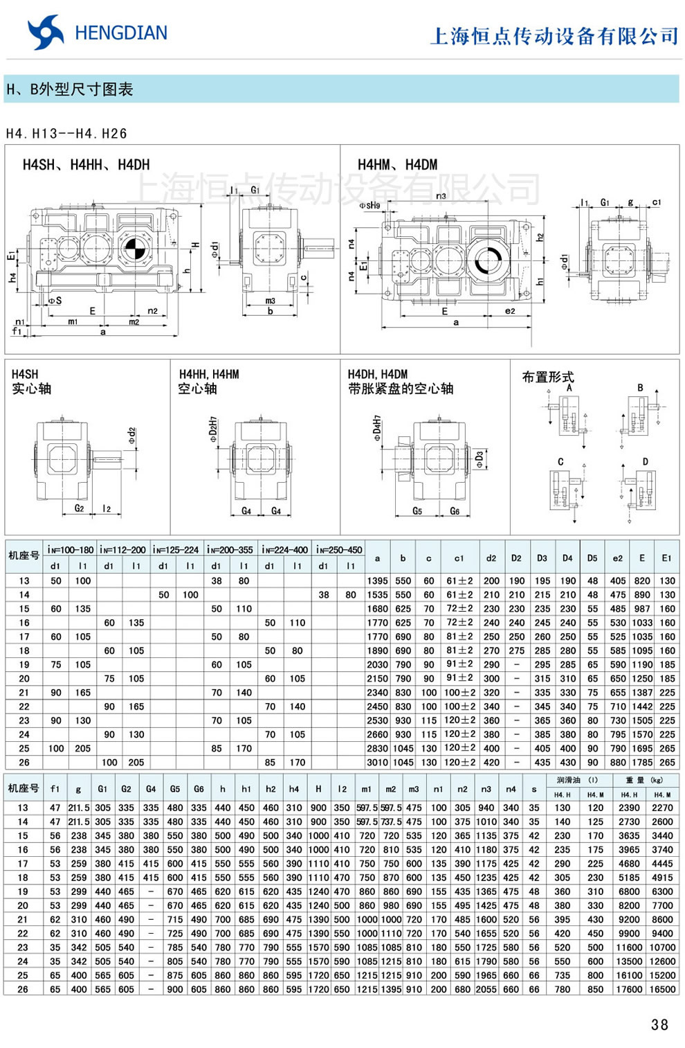 13 - HB系列外形尺寸(2) 14 - HB系列軸布置形式
