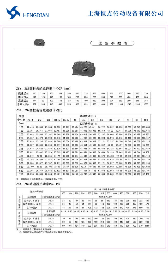 9 - ZSY傳動比表 10 - ZSY安裝尺寸圖